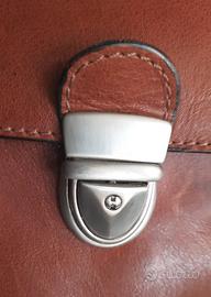 Borsa in pelle pieno fiore professionale, colore marrone chiaro, chiusura a scatto in metallo, mai usata doppio regalo, condizioni eccellenti, produzione artigianale, creazione italiana.
