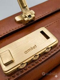 Vendo splendida cartella professionale da lavoro/ventiquattrore in vera pelle di alta qualità, color cuoio/marrone caldo. L'oggetto è NUOVO, mai usato, conservato con estrema cura (ancora presente l'imbottitura interna originale). Caratteristiche principali: •Materiale: Vera pelle pieno fiore, Made in Italy. •Scomparti: Interno organizzato con 3 ampi soffietti, tasca con zip e portapenne. •Chiusura: Doppia serratura di sicurezza a combinazione e chiave del prestigioso marchio svizzero Amiet. •Accessori: Inclusa chiave originale e sacca protettiva in tessuto (dustbag). •Condizioni: Impeccabili, pelle ancora rigida e lucida, senza alcun segno di usura o graffio.