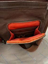 Vendo borsa a cartella marchio Piquadro colore marrone con interni arancio caldo. Ideale per universitari o lavoratori. Con porta PC e varie tasche. Pratica e resistente. Ottime condizioni