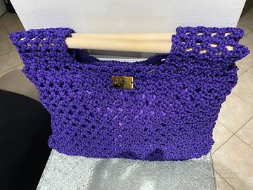 Borsa ha mano ad uncinetto colore violamanici in legno interno foderato