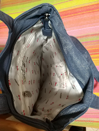 Borsa in stoffa da ragazza marca Frutta color jeans, tasche interne con cerniera, in ottime condizioni.