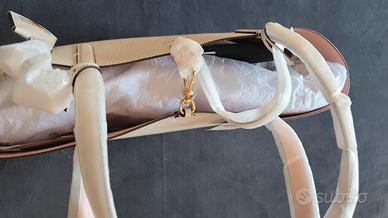La borsa e' in ecopelle, reverse interno rosa, si possono utilizzare i due colori.