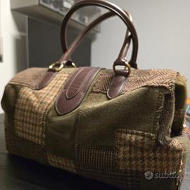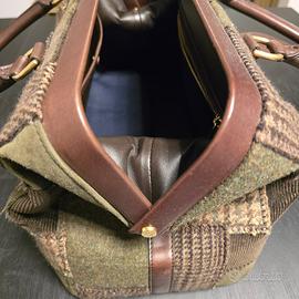 Vendo splendida borsa Ralph Lauren originale, realizzata in tessuto tweed patchwork con inserti e manici in vera pelle marrone e dettagli in metallo color ottone.