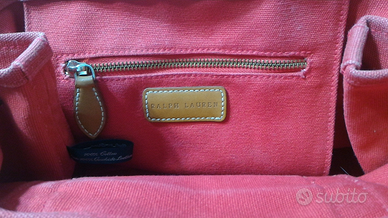 Borsa rosa in buone condizioni, originale, con apertura zip e ricamo logo sul davanti firmata dal logo Ralph Lauren. Formata da un apertura principale, una piccola tasca esterna, un taschino con zip interno, due bottoni esterni per rendere la borsa espandibile per qualsiasi evenienza e due, comode, maniglie di trasporto rinforzate in pelle. In aggiunta un piccolo borsellino esterno con zip, legato con un cordoncino in pelle alla maniglia di trasporto. La borsa firmata Ralph Lauren è disponibile per bambina e ragazza in taglia unica. "Caratteristiche":