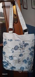 borsa in raso beige e decori perline azzurro. usata pochissimo