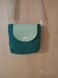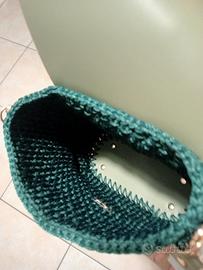vendo borsa completamente realizzata a mano in cordino verde , altezza 20cm per 25 cm lunghezza . realizzo borse anche su ordinazione .