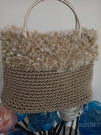 borsa realizzata all uncinetto con cordino e pelliccia manici in acciaio , abbastanza capiente per il necessario,