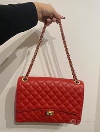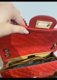 Borsa rossa trapuntata a spalla di Rebecca Van Dik in vera pelle, Made in Italy. Molto capiente con cerniere all’interno. Usata poche volte (le pieghe sono naturalmente presenti trattandosi di un prodotto in vera pelle). Leggera usura in un angolo ma poco visibile come si nota dalla foto.
