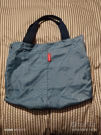 Norsa Reisenthel in nylon, leggera e capiente. colore azzurro con interno rosso e manici blu. 45x40 cm con possibilità di aumentare la capienza a 45 cm grazie agli alamari interni che spostano il fondo.