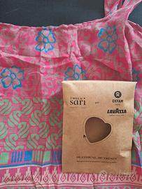 Shopping Bag I Was a Sari in collaborazione con Oxfam e Lavazza. Realizzata in India da stoffe di sari (indumento tipico delle donne indiane) riciclate, per cui ogni pezzo è unico.