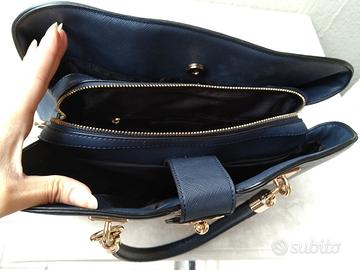 Colore blu con parti metalliche oro, tracolla rimovibile, modello molto capiente.