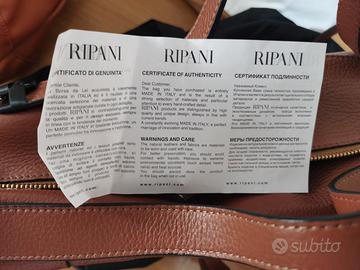 Vendo borsa ripani nuova mai usata come si vede dal cartellino e dal foglio di autenticità.... Formula visto e piaciuto così com'è.... No affaristi è perditempo...