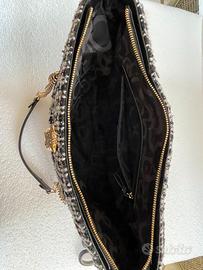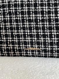 Borsa RoccoBarocco in tweed di colore bianco e nero,con manici a catena dorata.