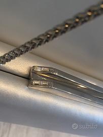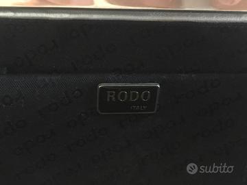 Borsa Rodo nuova ed originale rigida con laccio tracolla a catena finitura cromata rivestita in pelle di vacchetta pieno fiore. Tasca interna con targhetta con brand impresso. Chiusura gioiello ad incastro in metallo finitura cromata con targhetta con brand impresso. La borsa può essere anche usata come borsetta a mano da sera.