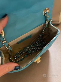 Borsa pochette trapuntata con tracolla a catena regolabile nuova colore turchese stupenda prezzo OUTLET vera pelle morbidissima
