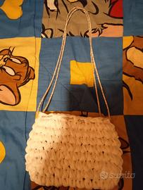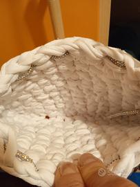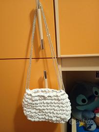 borsa bianca con tracolla con brillantini fatta a mano
