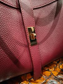 Borsa in pelle bordeaux, con sacca interna chiusa da zip. Portabile a spalla o a tracolla