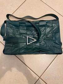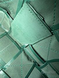 Vendo borsa Bottega Veneta Maxi Cassette. originale in pelle di vitello intrecciata color verde iconico. Modello grande,capiente, versatile e utilizzabile sia a spalla che crossbody. Condizioni come nuovo,lievi segni di utilizzo sugli angoli,poco visibili nell’uso quotidiano. Misure Altezza 23cm Larghezza 36 cm Profondità 4,5 cm