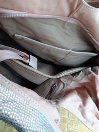 Vendo una borsa forma di sacca rosa cipria tempestata di brillantini fronte- retro...due scomparti interni separati..tasca cerniera..e taschini..nuova mai usata!....misura 40×35...bella grande...15 euro...no tutto subito ...luccicante al sole....le foto non rende molto