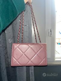 Borsa rosa trapuntata con catena