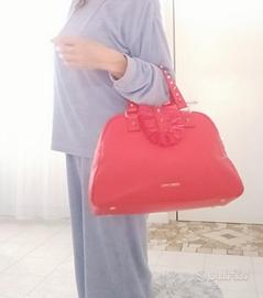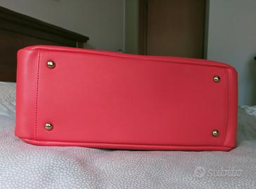 Borsa rossa a mano Denny Rose. in similpelle con borchie dorate. Zip alla chiusura e motivo in rafia. Come nuova no difetti e imperfezioni. Misura: altezza 23 larghezza 33 profondità 12
