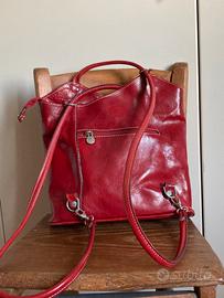 Bellissima borsa artigianale in pelle da portare a spalla oppure come zaino, come si può vedere nella terza foto.