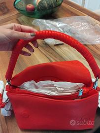 Nuova con cartellino, rosso tendente al corallo. Con doppia tracolla, lunga e corta.