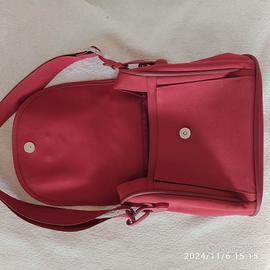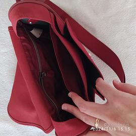 Borsa rossa con spallina regolabile Tre scompartimenti interni Presenta una macchia sul fondo (vedere foto) Chiusura con bottoncino a calamita