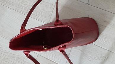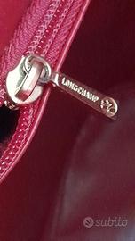 borsa in pelle opaca rosso scuro, originale Longchamp, pelle liscia, motivo morsetto dorato sui due lunghi manici, linea elegante, perfettamente conservata, interno ed esterno in ottime condizioni, tasca interna con cerniera zip e logo, foderata; prezzo interessante, ritiro sul posto o spese di spedizione a carico compratore info 3382097076