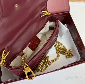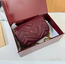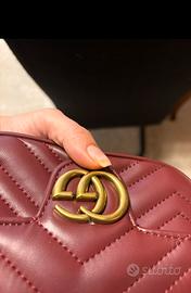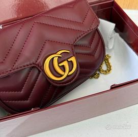 Borsa Gucci mini bordeaux Elegante borsa Gucci Marmont in versione mini, realizzata in pregiata pelle color bordeaux (o "Rosso Ancora") con la tipica trapuntatura matelassé a motivo chevron. No perditempo grazie solo persone serie e realmente interessate.
