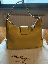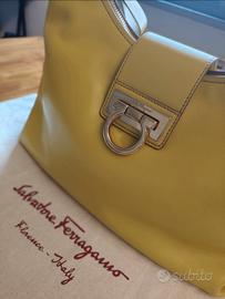 Borsa Salvatore Ferragamo originale, modello a spalla in pelle gialla con iconico dettaglio Gancini in metallo argentato.