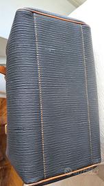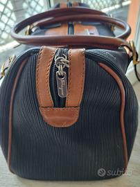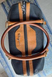 bella ed originale borsa in cuoio di Ferragamo nera con profili beige, chiusura lampo anche all'interno foderata di pelle nera ,due manici ,largh cm 33 x h cm 18, anche la pelle ha il marchio di Ferragamo,come nuova
