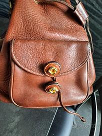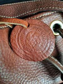 Borsa Samsonite a secchiello in vera pelle poco usata, pulita (come da foto), completamente foderata, con taschino interno con chiusura zip. Tasca frontale e tracolla regolabile. Dimensioni: circa cm 38 x h 30