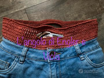 Borsa fatta a mano, con tessuto jeans e cotone lavorato con uncinetto.