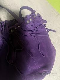 Vendo borsa con frange viola scamosciata, usata 1 volta, molto carina
