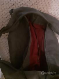 borsa scamosciata colore grigio interno rosso scuro multitasche e fibbie laterali
