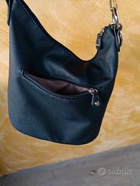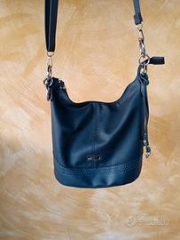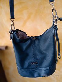 Borsa secchiello blu, nuova usata solo una volta. Vendo per inutilizzo. Capiente, die tasche con cerniera una dentro e l'altra nella parte posteriore esterna. Marca Bugatti.