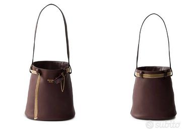 Iconico modello firmato Prada, questa Buckle Bucket Bag in pelle marrone cuoio combina design essenziale e dettagli ricercati,la hit bag del 2025. La silhouette a secchiello è valorizzata dalla cintura decorativa con fibbia in metallo dorato, simbolo di uno stile elegante e contemporaneo. Dotata di tracolla regolabile, è perfetta per l’uso quotidiano con un tocco di classe.