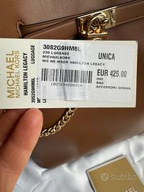 Secchiello Michael Kors, nuovo con cartellino, mai usato. Vera pelle con tracolla e dust bag originale. Interno scamosciato marrone, chiusura con calamite. Lucchetto frontale apribile e la catenella si può togliere. Non posso caricare più foto, se interessati ve le mando