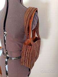 borsa secchiello cucita con tessuto da tappezzeria, la borsa è reversibile.