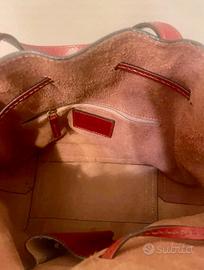 Borsa secchiello "Vittoria" The Bridge in cuoio con bordi a contrasto tinti a mano, accoglie con stile tutto ciò che ti serve ogni giorno. Grazie ai comodi manici e alla tracolla staccabile, può essere indossato come cross-ovver o portato a mano.