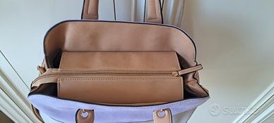 Borsa marca Segue Manici e tracolla inclusa, all'interno ci sono due scomparti e nel mezzo una tasca con zip. Misure: H28,5 cm L46 cm (la parte piu larga) la base è L 37 cm P 17 cm