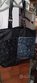 Vendo birsa shopper di Dallas Olindo in vera pelle nera con 6 tasconi in cavallino con fiori azzurri, tasche interne 2 maniglie da portare a spalla, misure:47x35 x17 cm, borsa molto capiente, in buono stato nei profili dei tasconi manca un po' di pelo ma è bella comunque