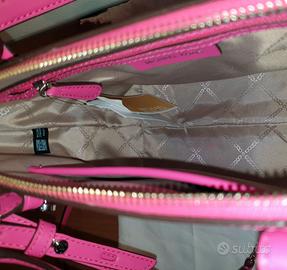 Colore rosa fucsia con logo in metallo e frangia pendente