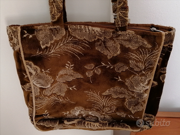 Shopper in velluto marrone ricamata damascata Almaplena. Nuova con cartellino.