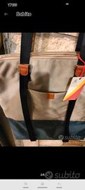 Borsa shopper multiuso, utilizzabile anche come borsa a mano o zaino, con uno scomparto esterno, diversi scomparti interni ye raffinato logo SEAT goffrato. Materiale: 100% poliestere Base: PU idrorepellente Dimensioni: 35×12×45 cm, 16l Colore: Blu/Sabbia