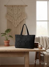 Borsa shopper di colore nero, capiente e pratica, con decorazione tono su tono ispirata a motivi in pizzo. Design semplice ed elegante, adatta all’uso quotidiano, al lavoro o al tempo libero. Struttura morbida, comoda da portare a spalla. Si abbina facilmente a diversi stili, dal casual all’elegante. Caratteristiche: Modello shopper Colore nero Decorazione tono su tono Capiente Buone condizioni Consegna a mano o spedizione tramite Subito.