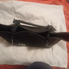 Borsa a mano black plain in materiale sintetico nero, caratterizzata da un anello metallico centrale decorativo. Caratteristiche: scomparto cellulare, scomparto interno spazioso, chiusura magnetica, fantasia nero (monocromo), impermeabile. Dettagli: Anello portachiavi. Tenuta in ottimo stato.