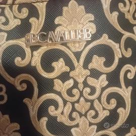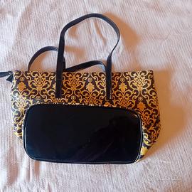 Borsa con iconico stile barocco che imita lo stile caratteristico di marche famose. Il design è definito da un motivo a volute dorate su fondo nero. Modello: Borsa tote/shopper con doppi manici lunghi e chiusura a zip. Tenuta molto bene, usata pochissimo. Materiale: Nylon oppure ecopelle. L'interno è blu.