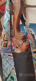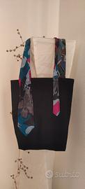 Borsa shopper, in cotone pesante nero e tracolla originale con una cravatta in seta e una cravatta in cotone vintage,con fodera in ottimo tessuto, lavorazione artigianale e soprattutto unica pezzi esclusivi, nuova.